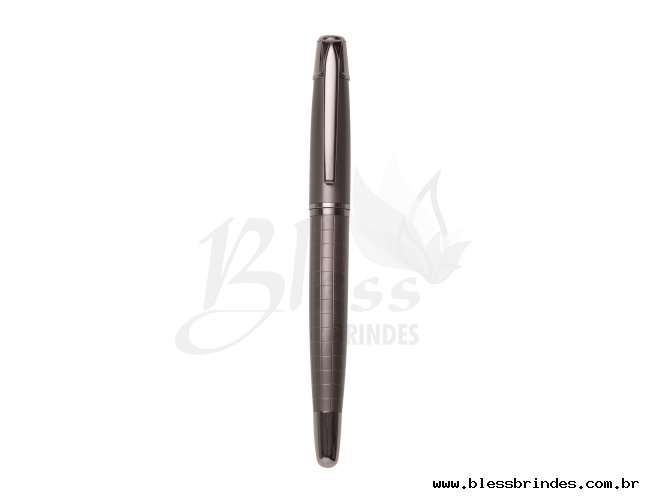 Descrição: Caneta roller metal na cor chumbo com detalhes quadriculados. Clip metal com centro e parte inferior da caneta brilhante. Para utilizar basta tirar a tampa.