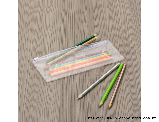 Estojo plástico zip zap, basta movimentar suporte branco para os lados para abrir/fechar.