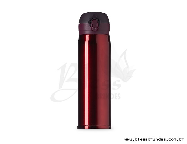 Garrafa térmica de 400ml de metal colorida com botão e válvula para abertura. Possui um sistema de trava (basta mover para cima/baixo para abrir/fechar), pressione o botão central para abrir a tampa(possui na parte interna borracha protetora evitando vazar o líquido). Para abrir a tampa por completo basta rosqueá-la, parte interna revestida em inox. Na embalagem do produto pode ir especificado a capacidade de 450ml ou 500ml devido aos fabricantes que trabalham terem impresso a descrição deste modo, porém ressalvamos a capacidade correta de 400ml.