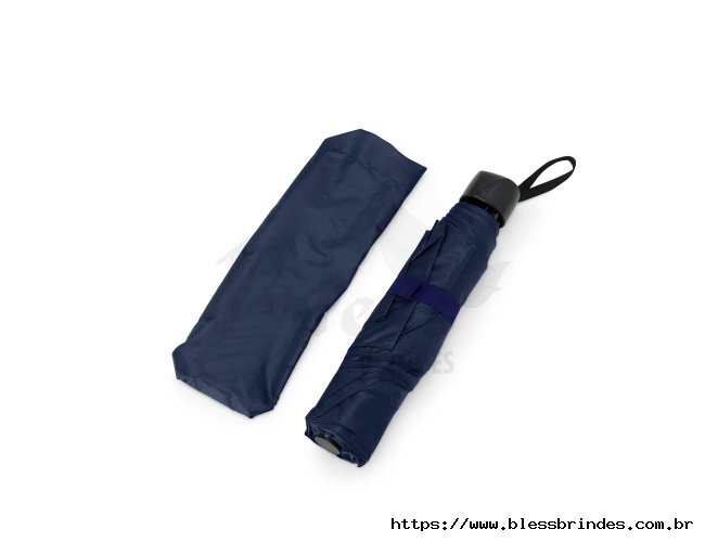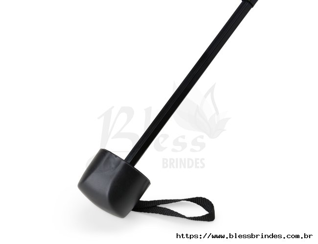 Guarda-chuva manual de tecido em nylon. Possui 7 varetas e estrutura em aço, pegador, botão de abertura e alça de nylon. Acompanha capa protetora.