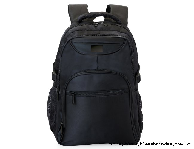 Mochila de nylon 30 litros com cinco compartimentos, sendo o principal com bolso para notebook 14. Com divisórias internas para acessórios, a mochila possui bolsos laterais em malha, alça de compensação, duas alças de mãos e área costada com revestimento espumado. Acompanha plaquinha metálica grafite com acabamento espelhado.