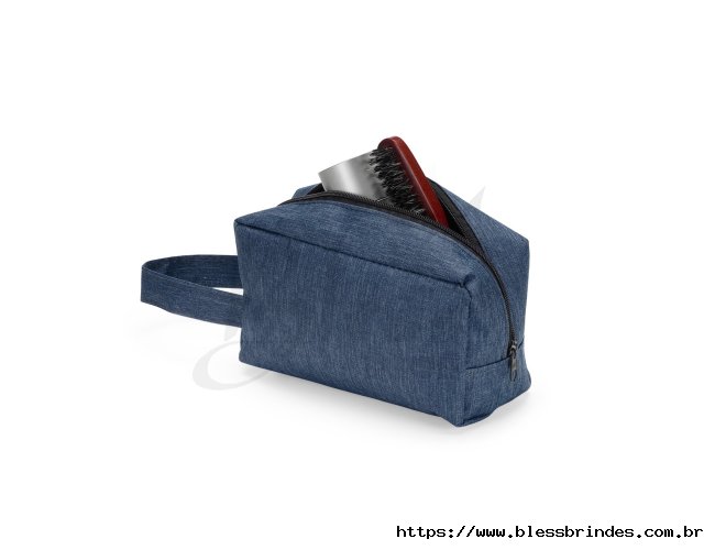 Nécessaire resistente à água feita em poliéster com mescla de PVC. Conta com fechamento em zíper e alça de mão localizada na lateral.
