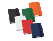 Caderno capa dura. C. sintético. Com porta esferográfica e 80 folhas pautadas. 90 x 140 mm